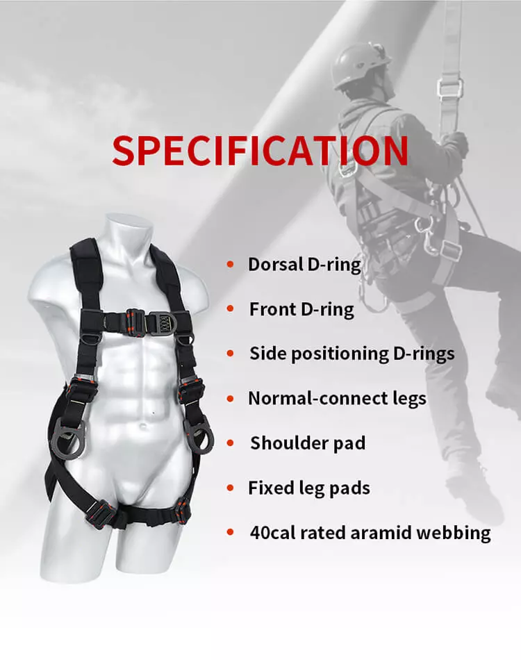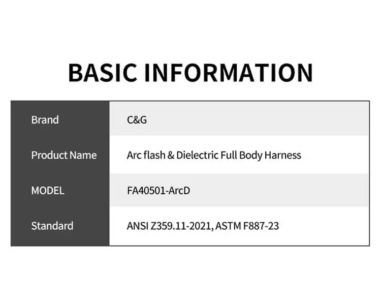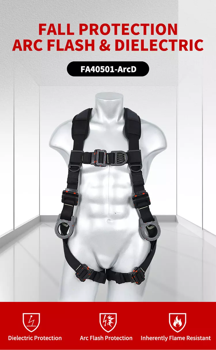 Model FA40501-ArcD Two D-ring Climbing Non-Belted Arc Flash Premium Full Body Harness with 9kV rated overmolded