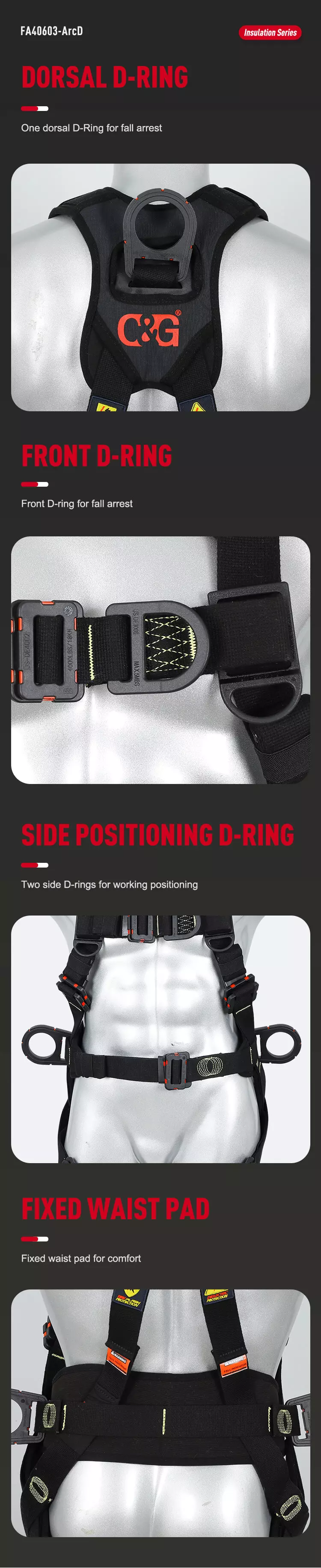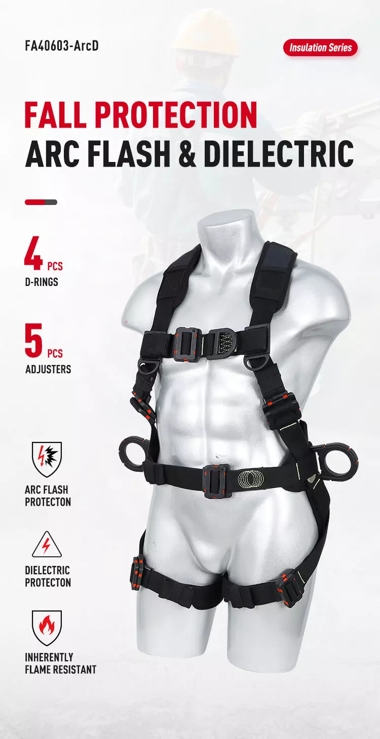 Model FA40603-ArcD 4 x Attachment point Construction Climbing Arc Flash Premium Full Body Harness with 9kV rated