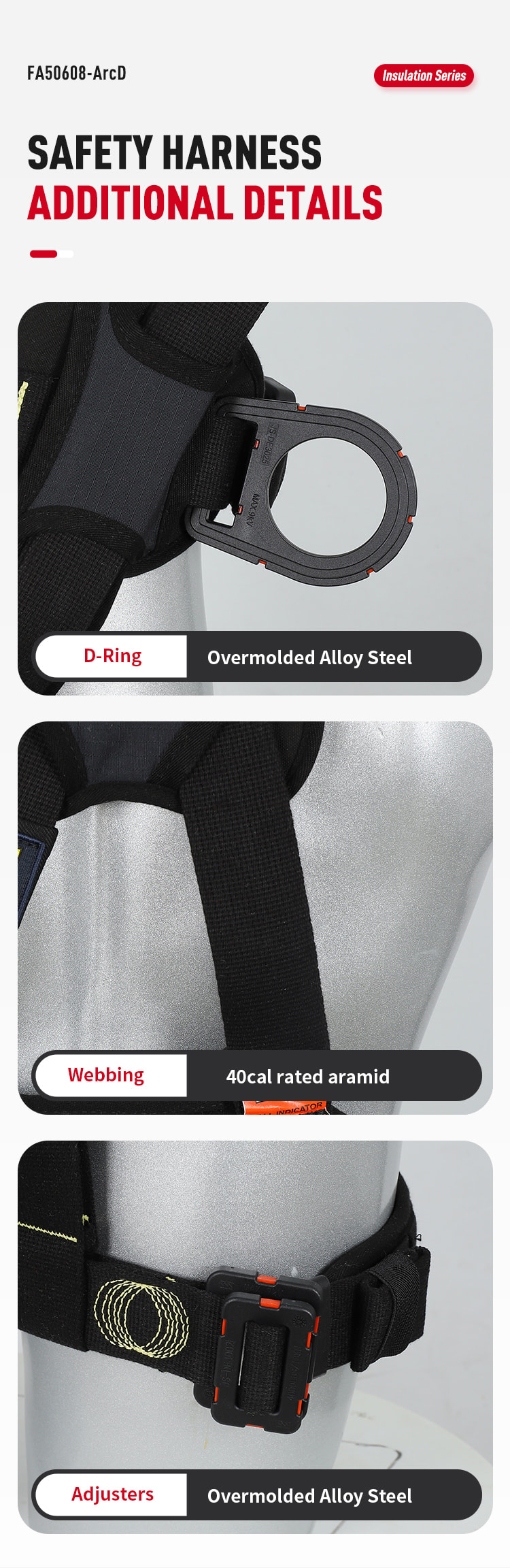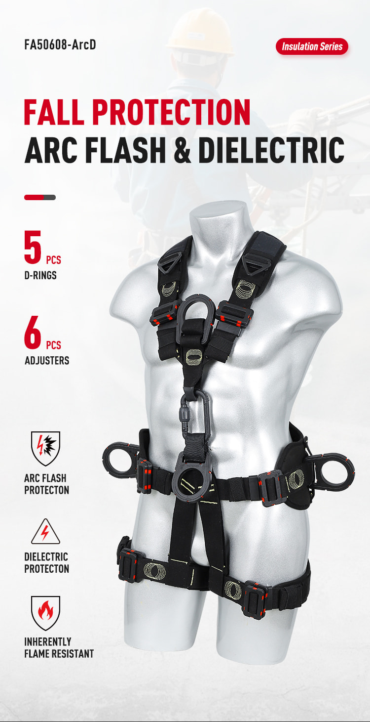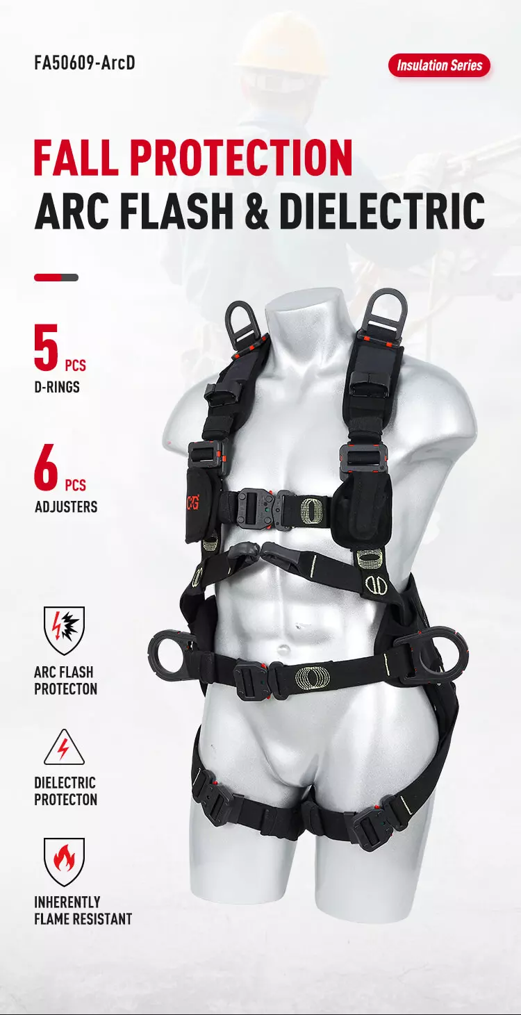 Model FA50609-ArcD 5 x Attachment point Construction Climbing Arc Flash Premium Full Body Harness with 9kV rated